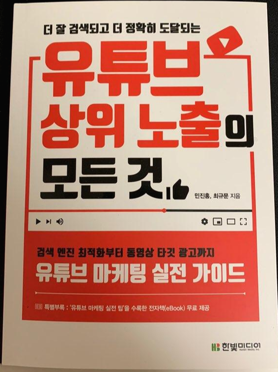 그러던중에 한빛 미디어에서 "유튜브 상위 노출의 모든것" 이라는 책을 리뷰 할 기회를 주셨습니다.