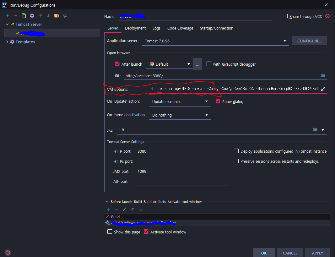 2. 위에 1에서 했던 editconfiguration에서 vmoption에